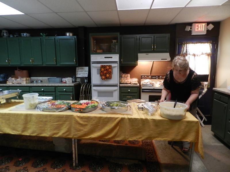 Kitchen has microwave, refrigerator, stove, 3 ovens, Bun coffee machine. and serving area for buffet. Bon Appetit Catering from Huntington has been here several times as well as Olive Garden and Casa Grande.